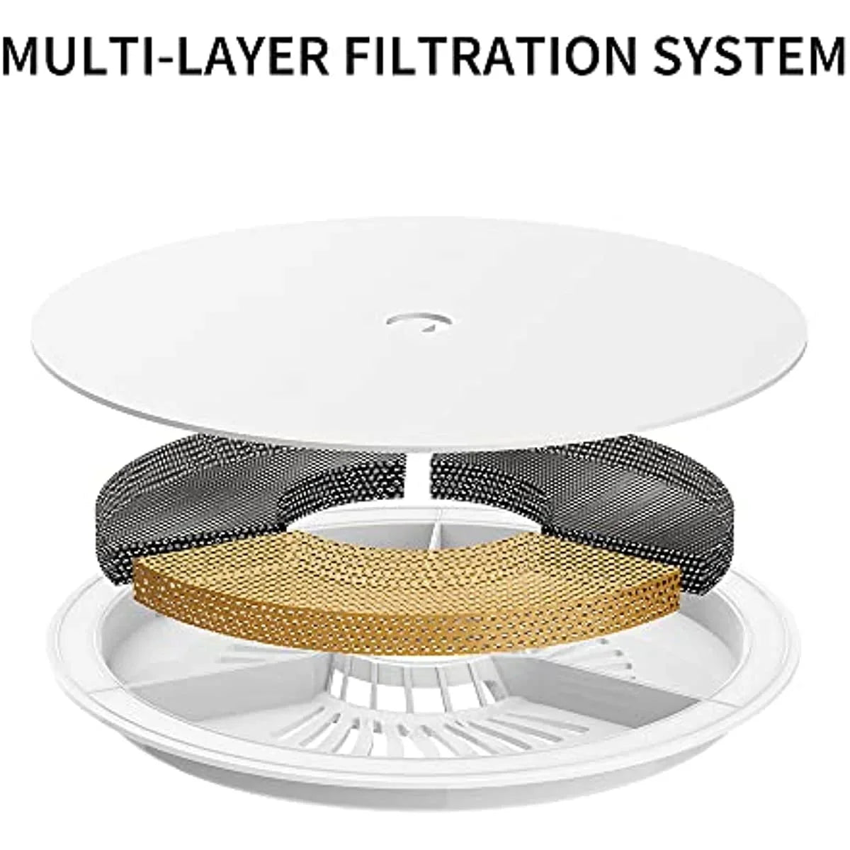 [Wireless Pump] The self-developed wireless pump eliminates any exposed wires to make pet drinking safer than ever [Detachable Main Unit] The main unit has no electronic accessories or power code, which can be washed separately without any safety risk. [Natural Flow] Playful spring attract pets to like drinking water [Filteration System 3.0] Improving purification and food grade safety for your pets. [Intuitive to monitor] The built-in LED light reminds you of the fountain's working status